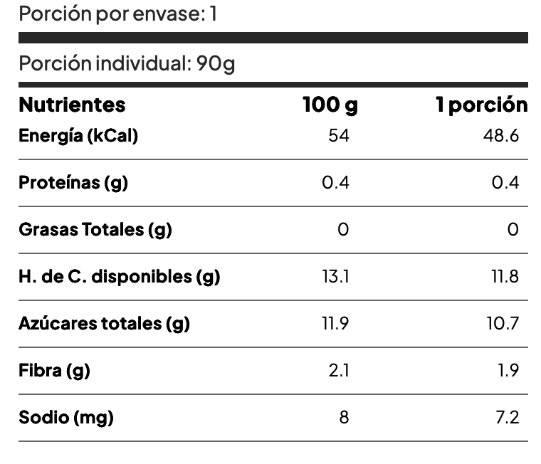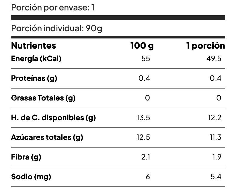 Los valores que se muestan son por porción consumida de 1/2 taza